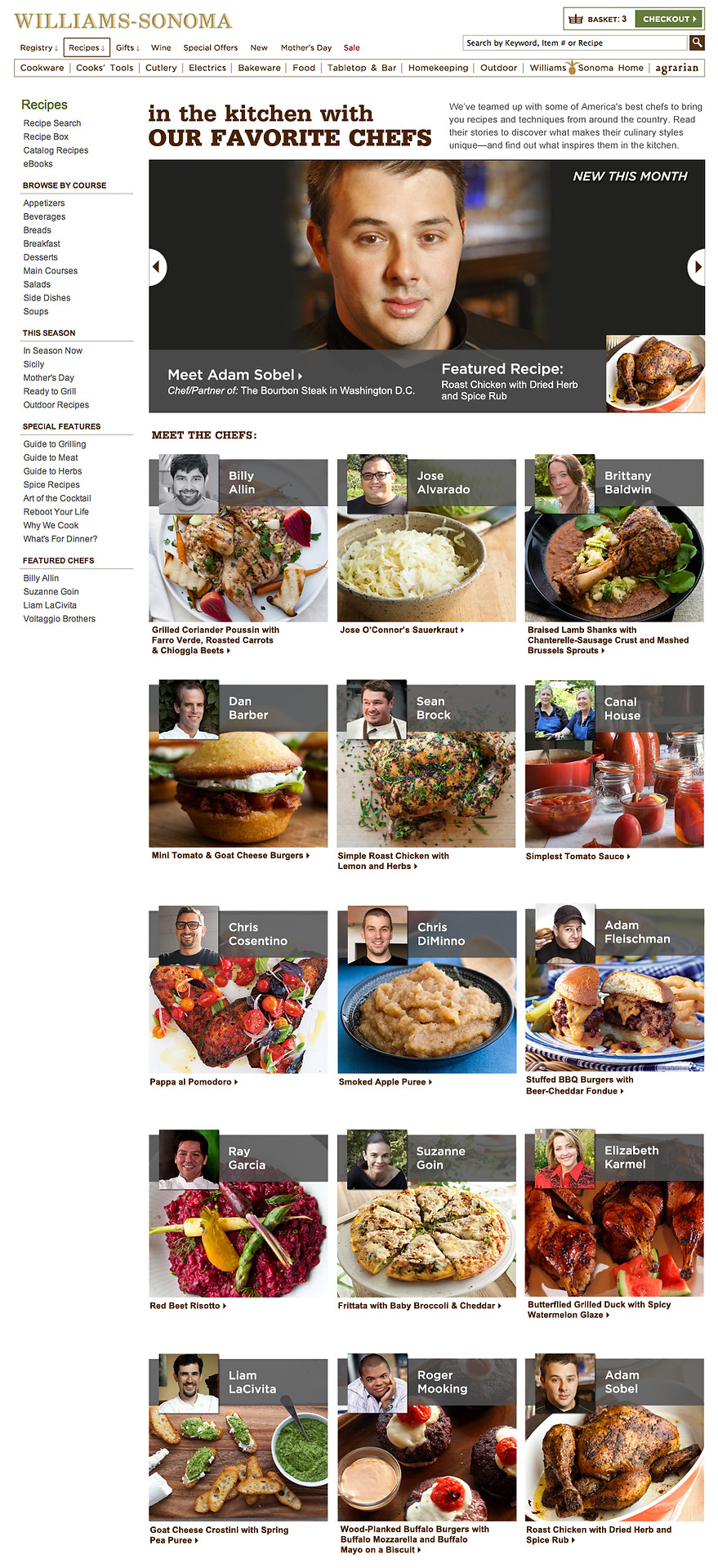Overview: We launched a partnership with various chefs and we needed a home for all of their recipes and content. The landing page became the hub for all of the content and the 'new chefs' introduced each month had a feature in the top hero. Below that, we archived all of the chefs with their favorite recipe for people for explore and enjoy.